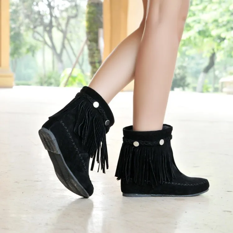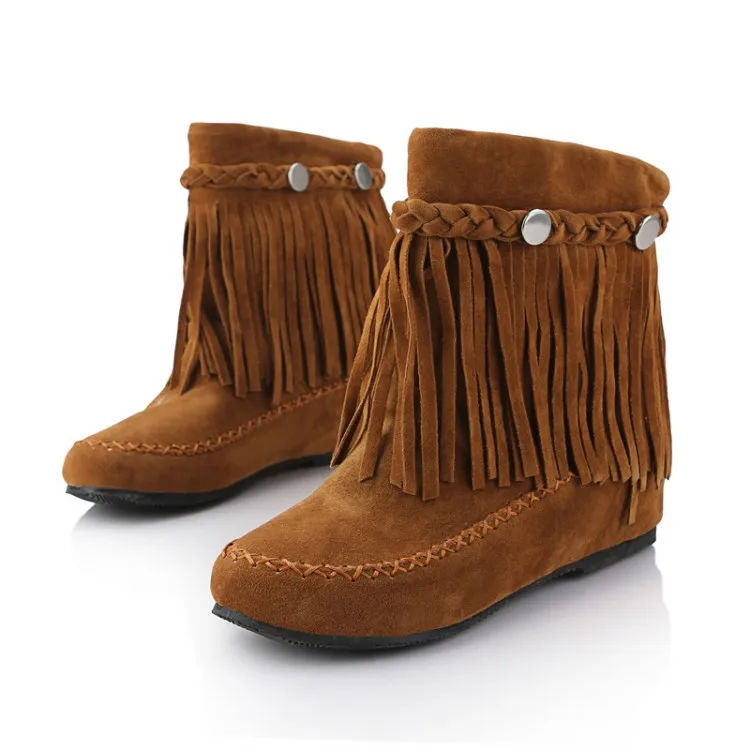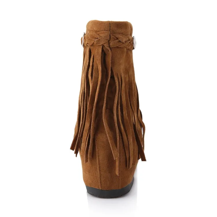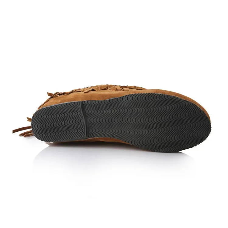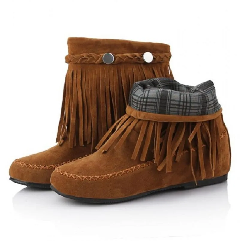 Bohemian gypsy boho ethnic national women tassel fringe Faux suede leather ankle boots woman girl flat shoes booties